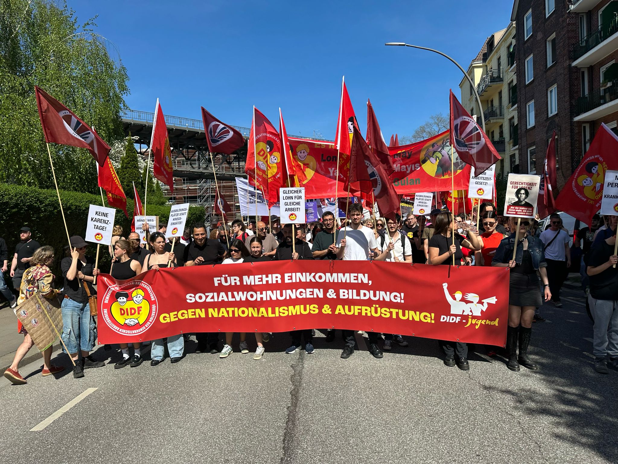 Doch wir lassen uns nicht spalten! Wir stehen Seite an Seite – im Betrieb, auf der Straße und in den Gewerkschaften. In den letzten Tarifkämpfen haben wir gezeigt, welche Kraft wir haben: Zehntausende sind aufgestanden, haben gestreikt und sich gegen den Rechtsruck gestellt. Diese Stärke tragen wir am 1. Mai wieder auf die Straße – entschlossen, solidarisch und kämpferisch. Für höhere Löhne, sichere Arbeitsplätze, gegen Krieg, Aufrüstung und Nationalismus!
